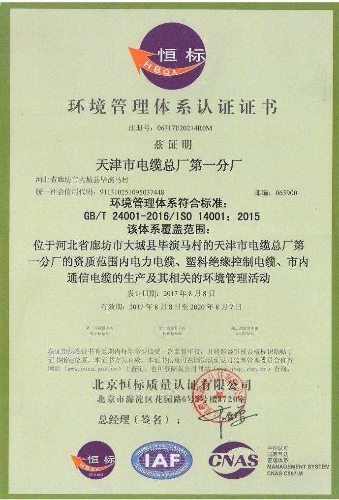 天津市電(diàn)纜總廠分(fēn)廠順利通過環境體(tǐ)系認證