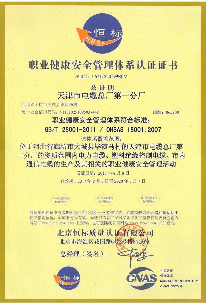 天津市電(diàn)纜總廠分(fēn)廠順利通過職業健康體(tǐ)系認證